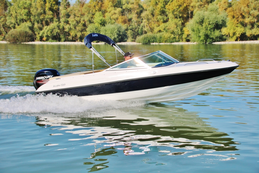 Die Auster 520 CD beeindruckt nicht nur mit ihrem stilvollen Design, sondern bietet auch reichlich Platz für die Aufbewahrung Ihrer Ausrüstung, zudem gehört sie zu den Außenbordern. Das deutsche Fabrikat von der renommierten Bootsmarke Auster zählt zu den beliebtesten Sportbooten und eignet sich durch die Breite von 1,98 m für besonders enge Parkboxen. Sportboot begeisterte können dabei zwischen Mercury, Yamaha und Suzuki Motoren wählen. Durch den geschlossenen Bug der Auster 520 CD (CD=closed deck) verfügt die Auster über ein besonders hohes Maß an Sicherheit.