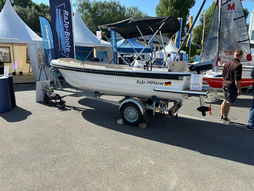 Tauchen Sie mit der RaJo MM434e in eine andere Welt des Bootfahrens ein: elektrisches Antriebssystem, null Emissionen, kaum Geräusche - aber trotzdem volle Leistung dank der elektrischen Antriebe von Torqeedo. Dieses Boot verbindet Nachhaltigkeit mit Komfort und klassischem Design.
