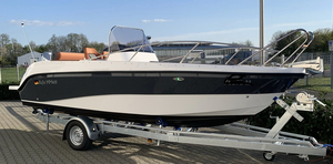 Einsteigermodell mit Mittelsteuerstand und großer Sonnenliege im Bugbereich, leicht trailerbar