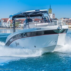 Sportlicher Daycruiser mit gut ausgestatteter Kabine und Übernachtungsmöglichkeit für zwei