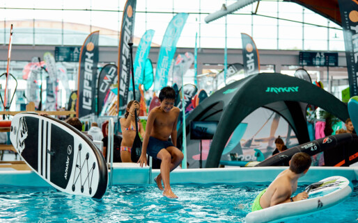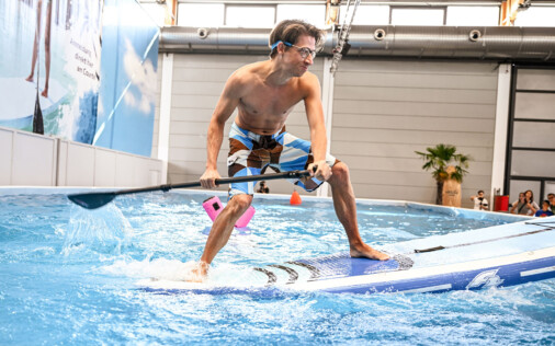 Much loved and an integral part of Hall A5 for years: With its large test pool, the INTERboard offers all visitors the unique opportunity to test SUPs live or get a first feel for this fascinating sport.