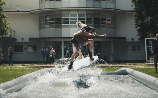 Skimboarding can be tried out again this year in a special shallow water pool. Skimboarding involves gliding on a thin film of water with the help of a board. Skim pros will also be demonstrating their skills on the "flat disk" every day. There are also lots of accessories, clothing and water skis and wakeboards for sale in the hall.
