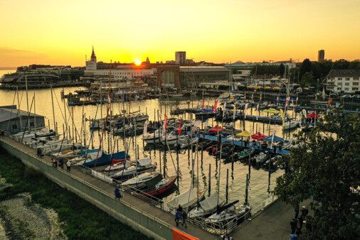 Who can offer Europe's third largest lake as a test basin? No wonder serious prospective buyers love the test opportunities there so much. In addition, the women's motorboat training and the special flair of the harbor gastronomy, which epitomizes the wonderful lake feeling, are inspiring.