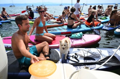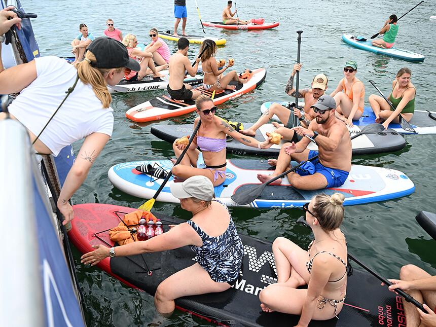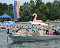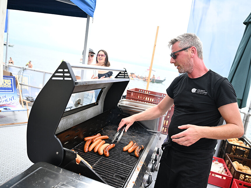 On the first two weekends in August, it was time to get back on the board and fire up the grill! The first stop of the SUP&Grill had to be canceled due to weather conditions, but on the second weekend we were rewarded with even more sun and perfect SUP&Grill weather. With our floating bar, we were on the move at the two paddling spots off Kressbronn and Fischbach. Also on offer: the finest beats, free barbecue delicacies (including vegetarian options!) and ice-cold non-alcoholic drinks – and you brought plenty of good vibes and a great atmosphere with you.